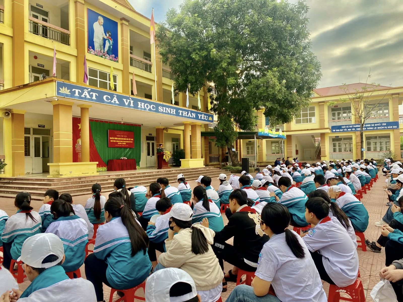 Tại buổi giao lưu nói chuyện, 492 em học sinh và cán bộ giáo viên Trường THCS Đinh Xá đã được bác Cựu Chiến binh kể lại những câu chuyện về những năm tháng chiến tranh đầy gian khổ và những hy sinh to lớn của quân và dân cả nước trong hai cuộc kháng chiến trường kỳ của dân tộc. Đồng thời, khẳng định truyền thống vẻ vang và sự lớn mạnh của Quân đội nhân dân Việt Nam trong suốt chặng đường 81 năm chiến đấu, xây dựng, bảo vệ và trưởng thành của Quân đội nhân dân Việt Nam với những câu chuyện đầy cảm xúc của người chiến sĩ trong kháng chiến và trong thời bình…